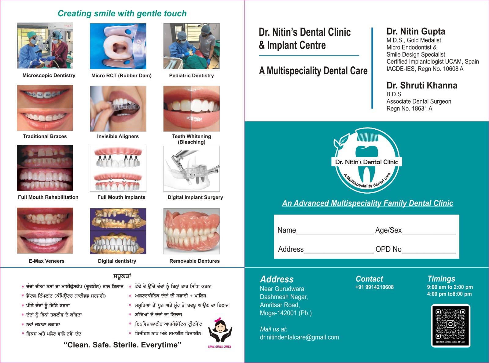 Dr.Nitin's dental clinic and implant centre, Suraj Nagar, Moga, Punjab 142001
